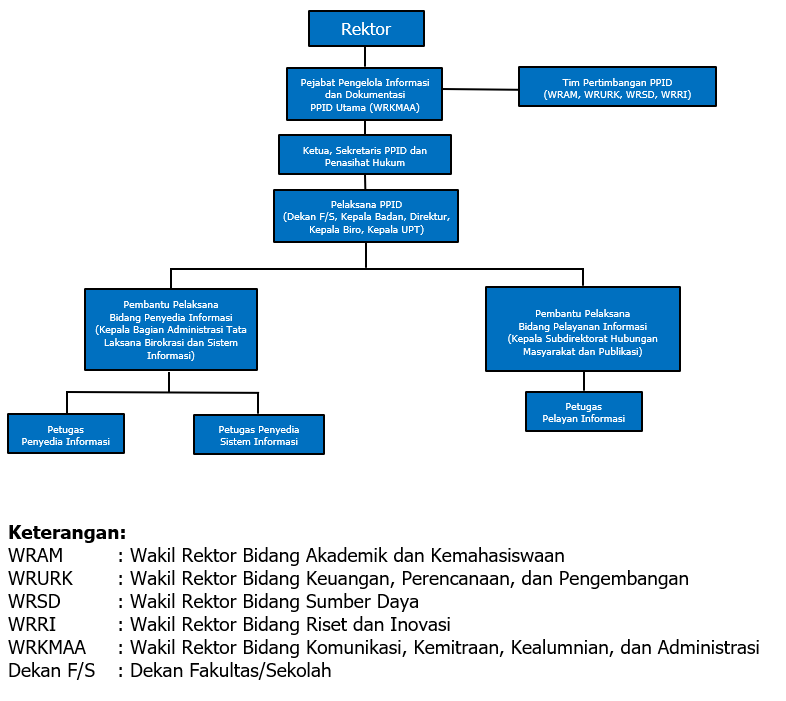 - Membantu, mendampingi dan/atau mewakili Atasan PPID (Rektor) dan/atau PPID Utama (Sekretaris Institut) apabila terdapat proses penyelesaian sengketa informasi publik.